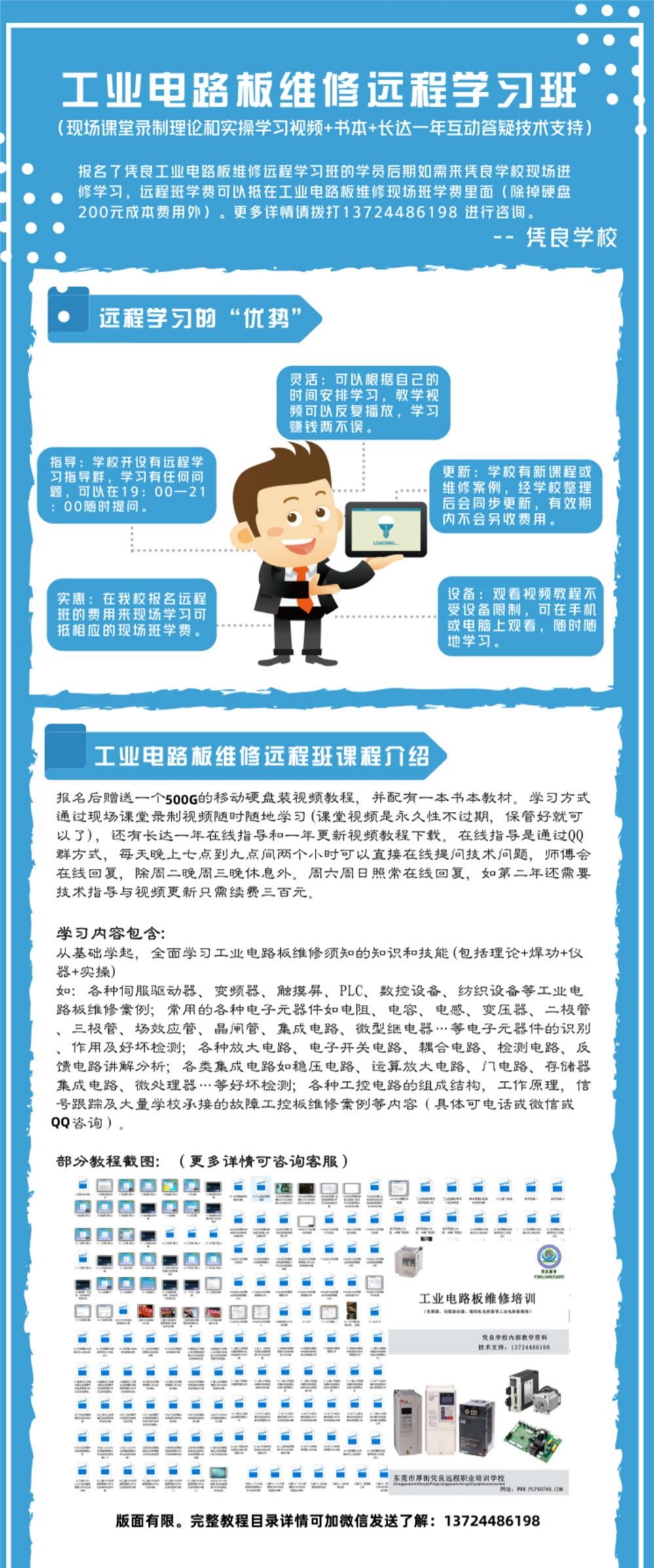 如需购买完整版教程请电话或微信联系:13724486198。 我校还有开设现场培训班,详情可致电咨询。 远程班(技术指导)1980元:包含视频、书本、一年技术指导,视频配一个500G 硬盘装和书本快递寄出,后期视频可免费更新。 注:视频教程报名后是永久都可以观看的,不会过期。 报名远程班的费用后期如需报名我校的现场班可以抵学费差价。 工业电...